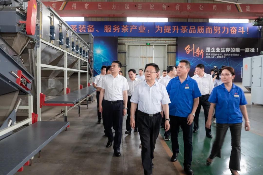 11月30日,中國國際茶文化研究會(huì)副會(huì)長丁世明、衢州市政協(xié)副主席琚建軍、中國農(nóng)業(yè)科學(xué)院茶葉研究所研究員魯成銀等專家領(lǐng)導(dǎo)一行蒞臨上洋機(jī)械現(xiàn)場考察,一起為衢州百億茶產(chǎn)業(yè)發(fā)展把脈問診,共話"三茶統(tǒng)籌"發(fā)展新機(jī)遇。