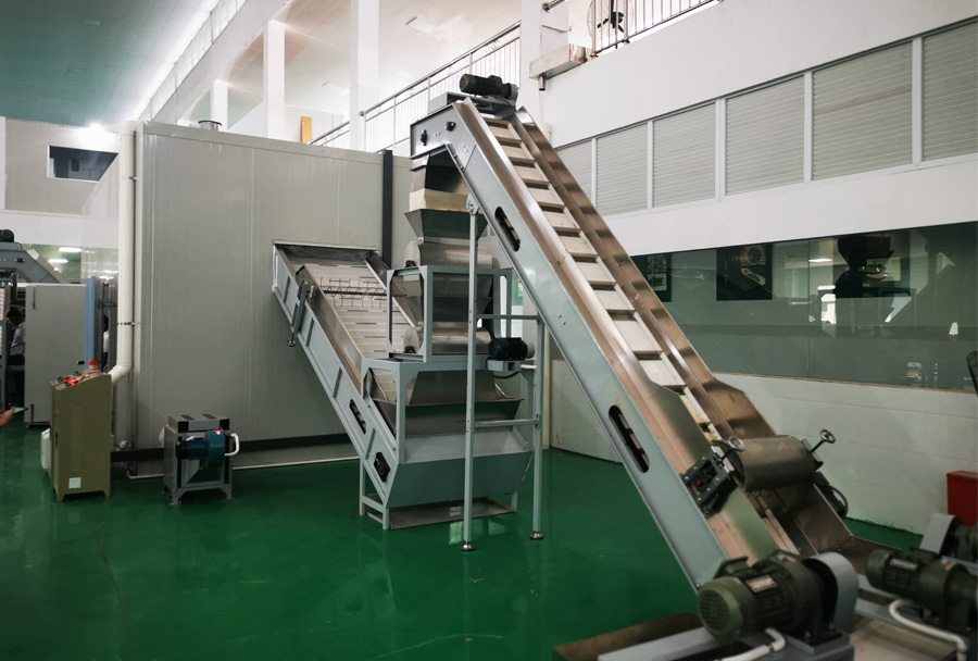 作業原理:連續發酵機可在發酵過程中實現供氧、換氣、加溫、增濕等功能,科學布局溫、濕度管道保證相對恒定的發酵環境,連續發酵機主機置于發酵箱體(房)內,設置多層輸送網帶,揉捻葉達到發酵要求后,自動流出到下個環節。